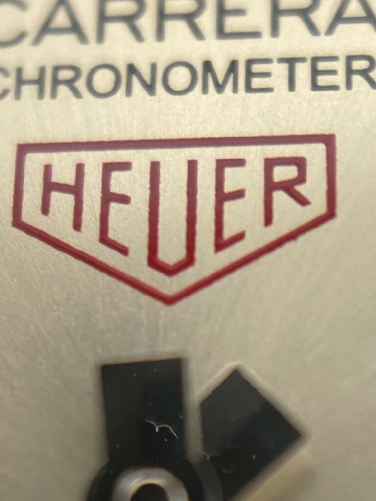 1枚目に「タグ・ホイヤー」のホイヤーの部分が英語で、2枚目にクロノグラフの短針が写っております。