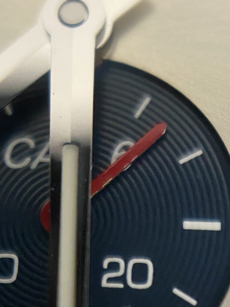 それに2枚目の写真の赤い短針の‘塗り‘ですが、右側が4箇所雑or剥がれている所が見えるかと思います。